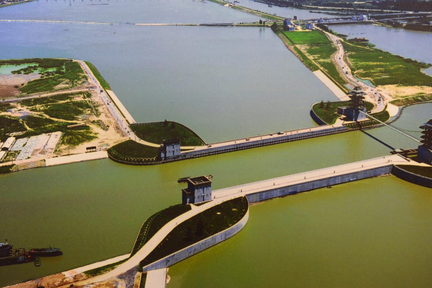 淮河入海水道淮安樞紐工程位于江蘇省淮安市南郊淮安區(qū)、京杭運(yùn)河與蘇北灌溉總渠交匯處北側(cè)的淮河入海水道上,是淮河入海水道的第二級(jí)樞紐,為Ⅰ等工程。該工程2000年10月20日開工,2001年3月26日運(yùn)河截流成功,2002年5月31日通過通航階段驗(yàn)收,航槽開始充水,恢復(fù)通航。2002年12月28日,立交地涵水下工程通水驗(yàn)收,2003年10月21日淮安樞紐工程竣工。