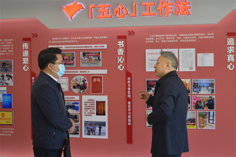 王部長一行實地參觀了淮安建科院黨建陣地、勞模創(chuàng)新工作室,并觀看了企業(yè)宣傳片,通過現(xiàn)場解說、圖文展板、音影展示等多樣化的形式全方位了解企業(yè)黨組織發(fā)展歷程和黨建工作特色亮點,對建科院將黨建與業(yè)務(wù)開展相融合、以黨建引領(lǐng)團(tuán)結(jié)全體干部職工凝心聚力,從而帶動企業(yè)健康發(fā)展的具體做法予以充分肯定。