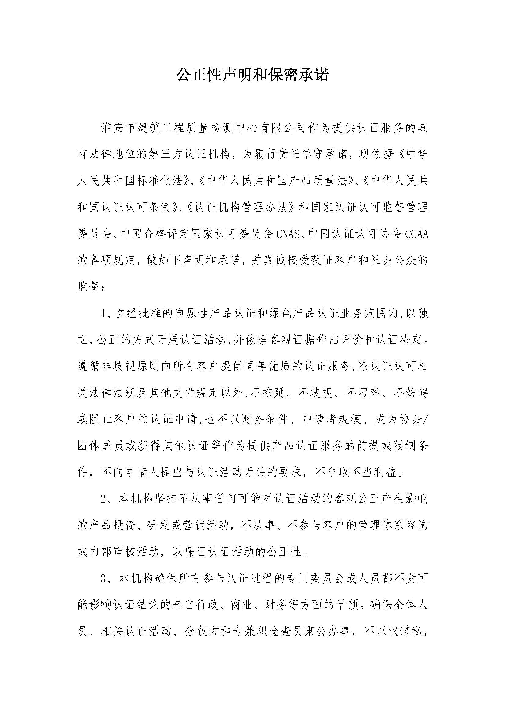 公正性聲明和保密承諾